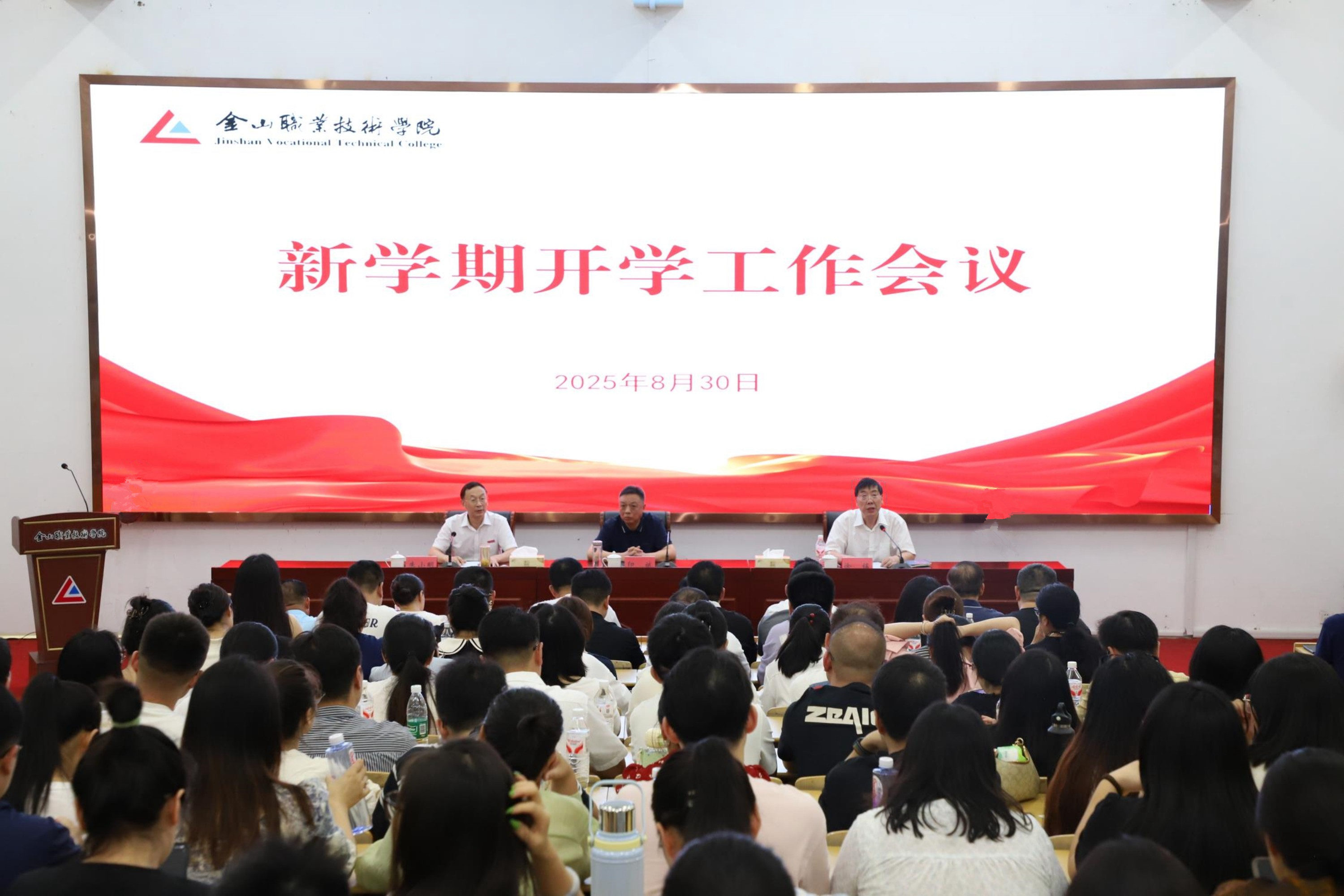 ——我校召开新学期开学工作会议   8月30日上午,我校在金山学堂召开2025-2026学年第一学期开学工作会议。学校全体教职工参加会议,会议由校党委书记徐铭主持。 执行校长朱...