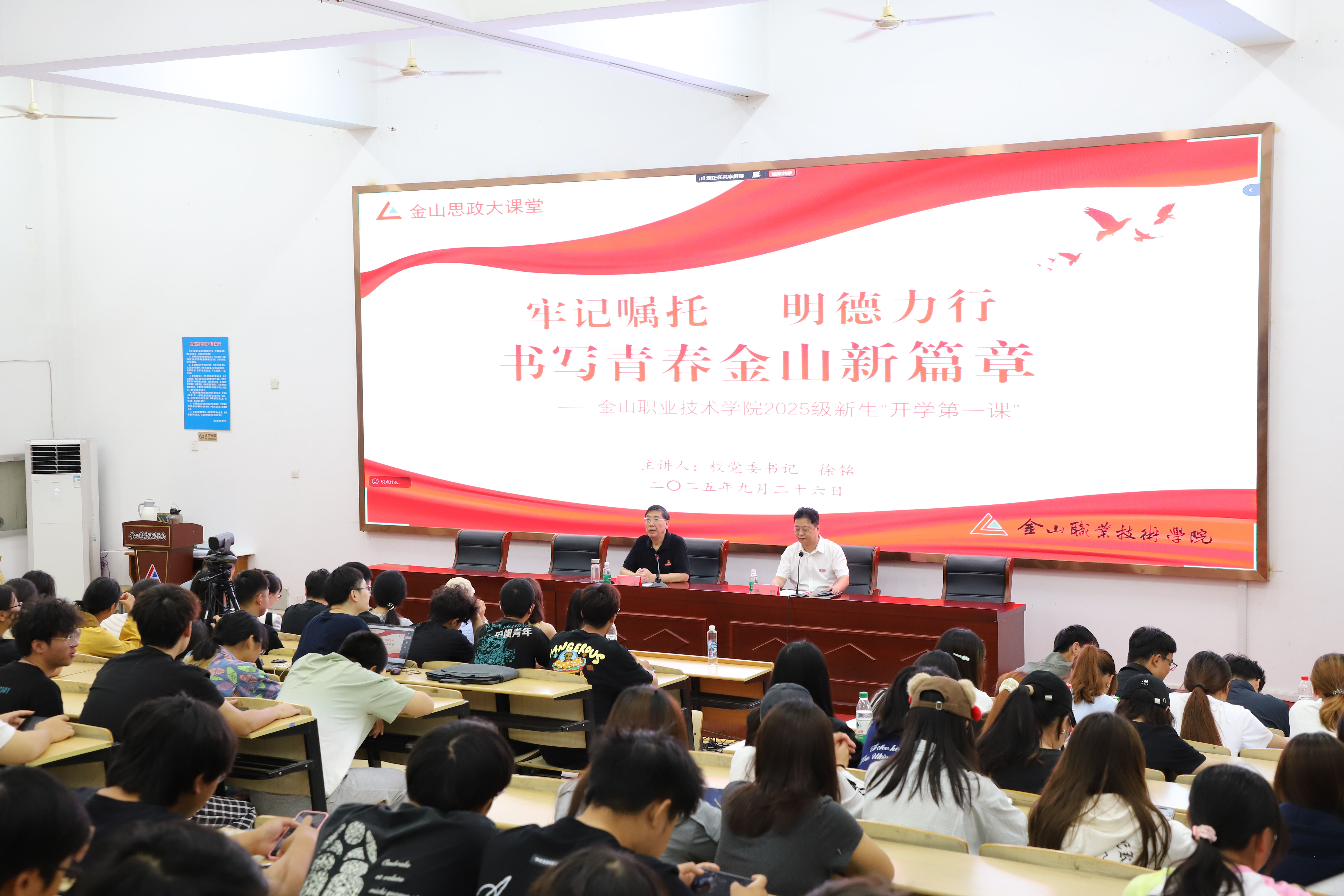秋风习习,崭新的金山校园充满了青春的热情。9月26日,我校2025级新生“开学第一课”如约而至,校党委书记徐铭为全体新生生动开讲。徐书记以《牢记嘱托 明德力行 书写青春金山新篇章》为...