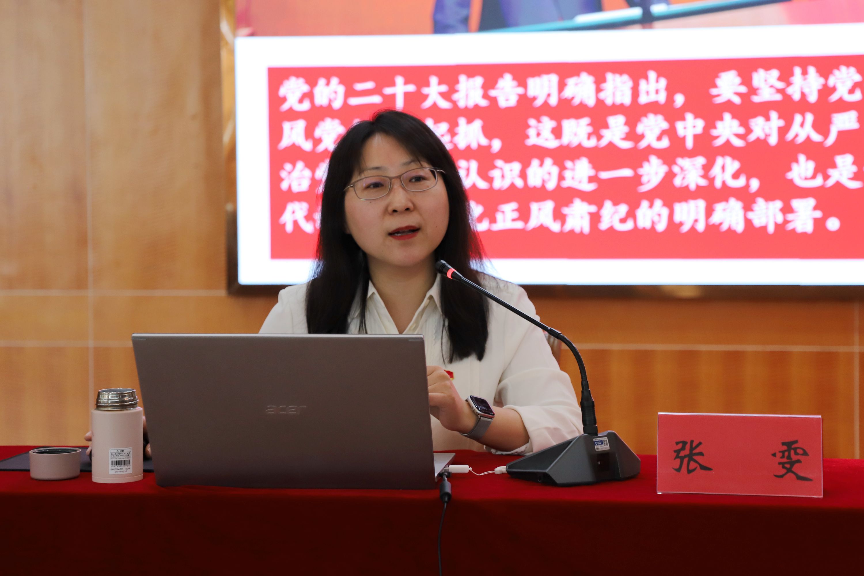 张雯教授以《作风建设永远在路上》为题作专题辅导。她结合典型案例,系统梳理了中央八项规定实施以来的历史性成就,深入剖析了作风建设面临的阶段性特征,并围绕“如何贯彻中央八项规定精神加强党的作风建设,一体推进学查改”提出了三个“突出”的提升路径:一是突出深化学习、增强自觉;二是突出问题导向、全面查摆;三是突出真改实改、标本兼治。报告既有理论高度,又贴近工作实际,与会人员纷纷表示深受启发。