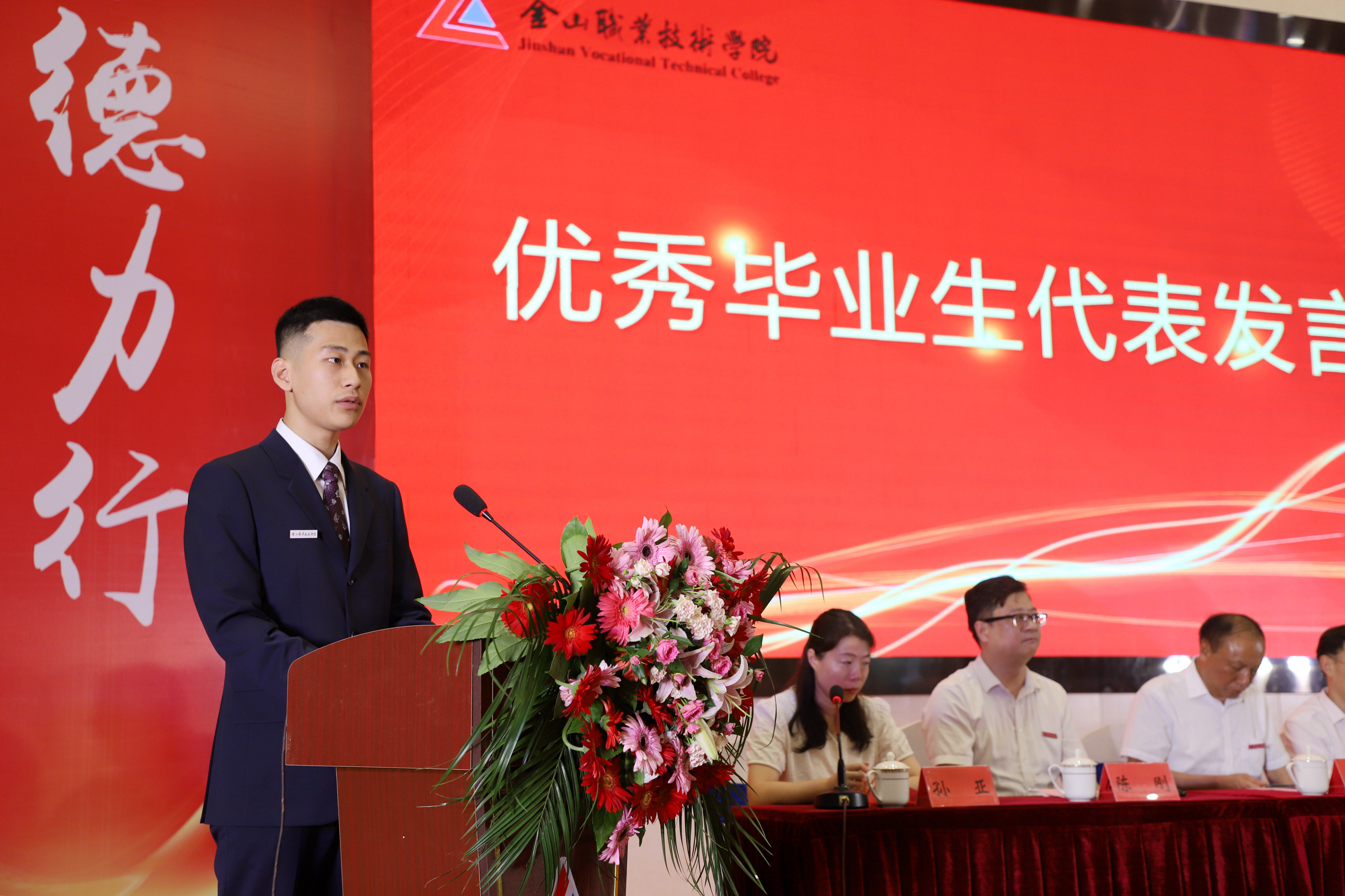 优秀毕业生代表吴浩楠同学则代表全体2025届毕业生发言,他回顾了在金山的求学历程,表达了对母校、师长和同窗的感恩之情,并满怀信心地展望未来,许下了砥砺前行、无惧风雨的誓言。
