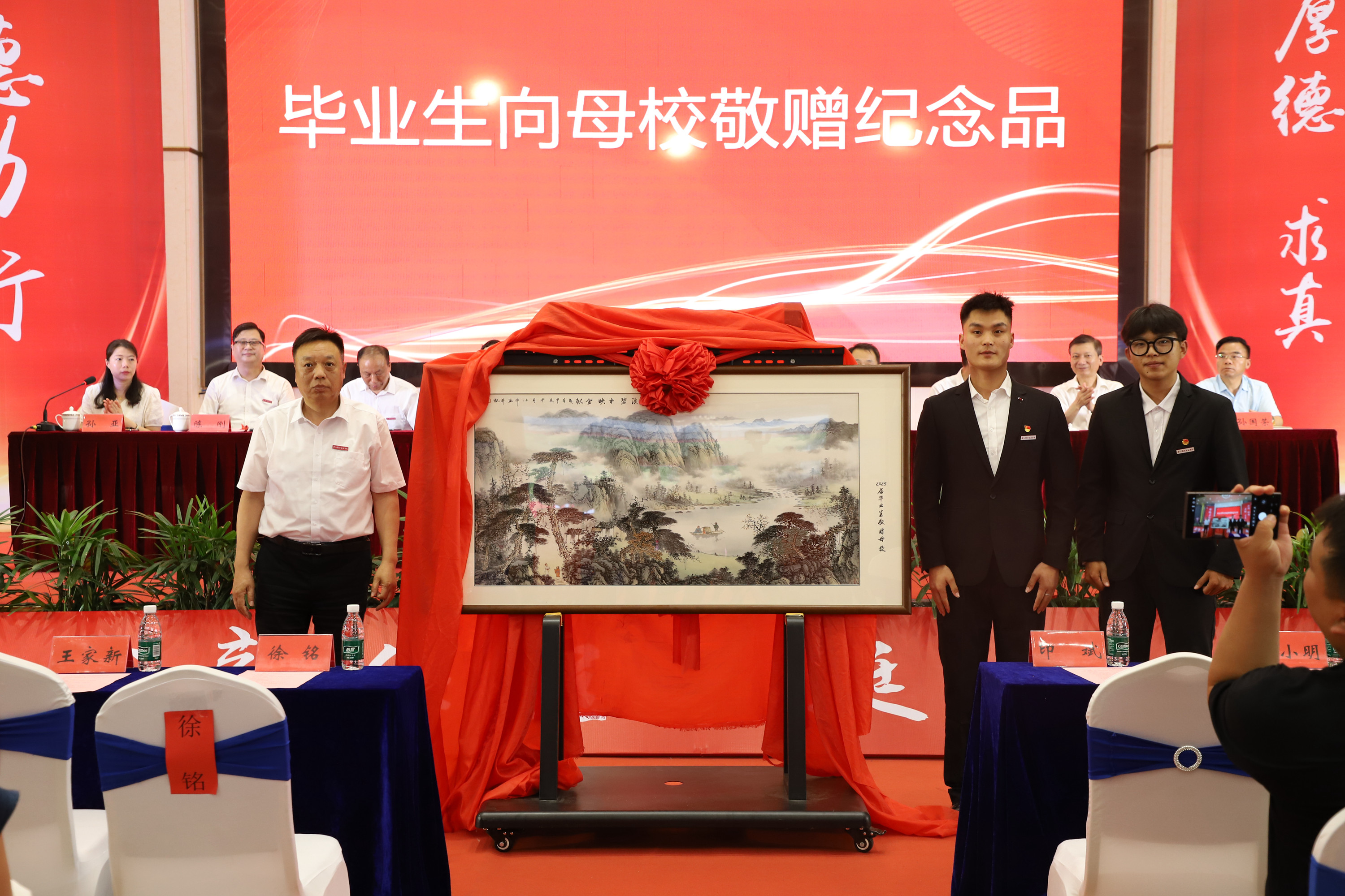 理事长印斌庄重地接过毕业生代表向母校敬赠的纪念品。这份礼物,承载着毕业生们对金山学院最深沉的眷恋与最美好的祝愿。