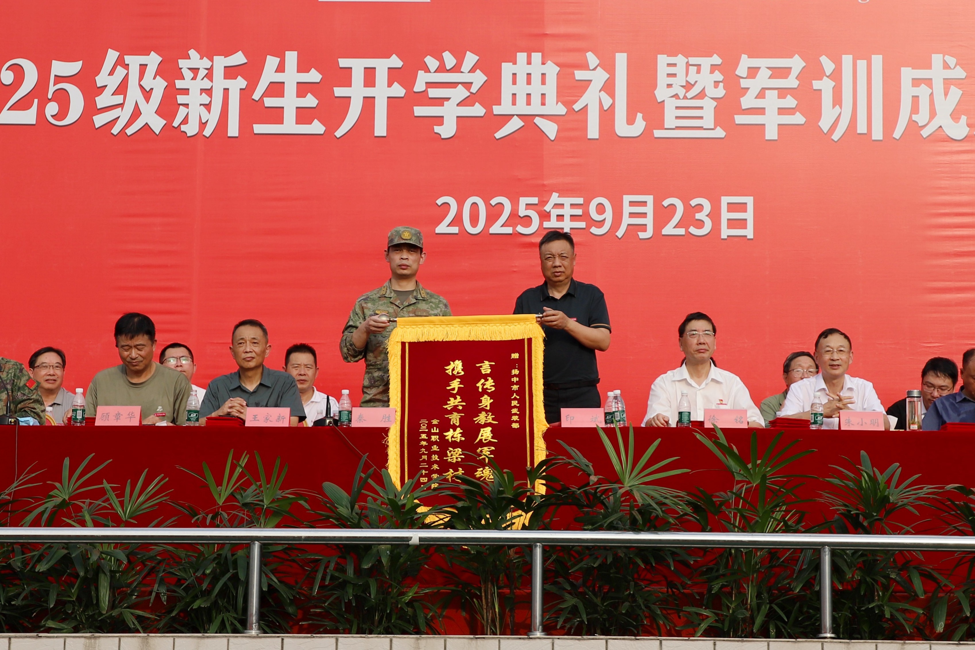 整场活动在庄重而热烈的氛围中落下帷幕。2025级新生的大学生活已正式启航,他们将以军训为起点,不负时代、不负韶华,在金山职业技术学院书写属于自己的精彩篇章。