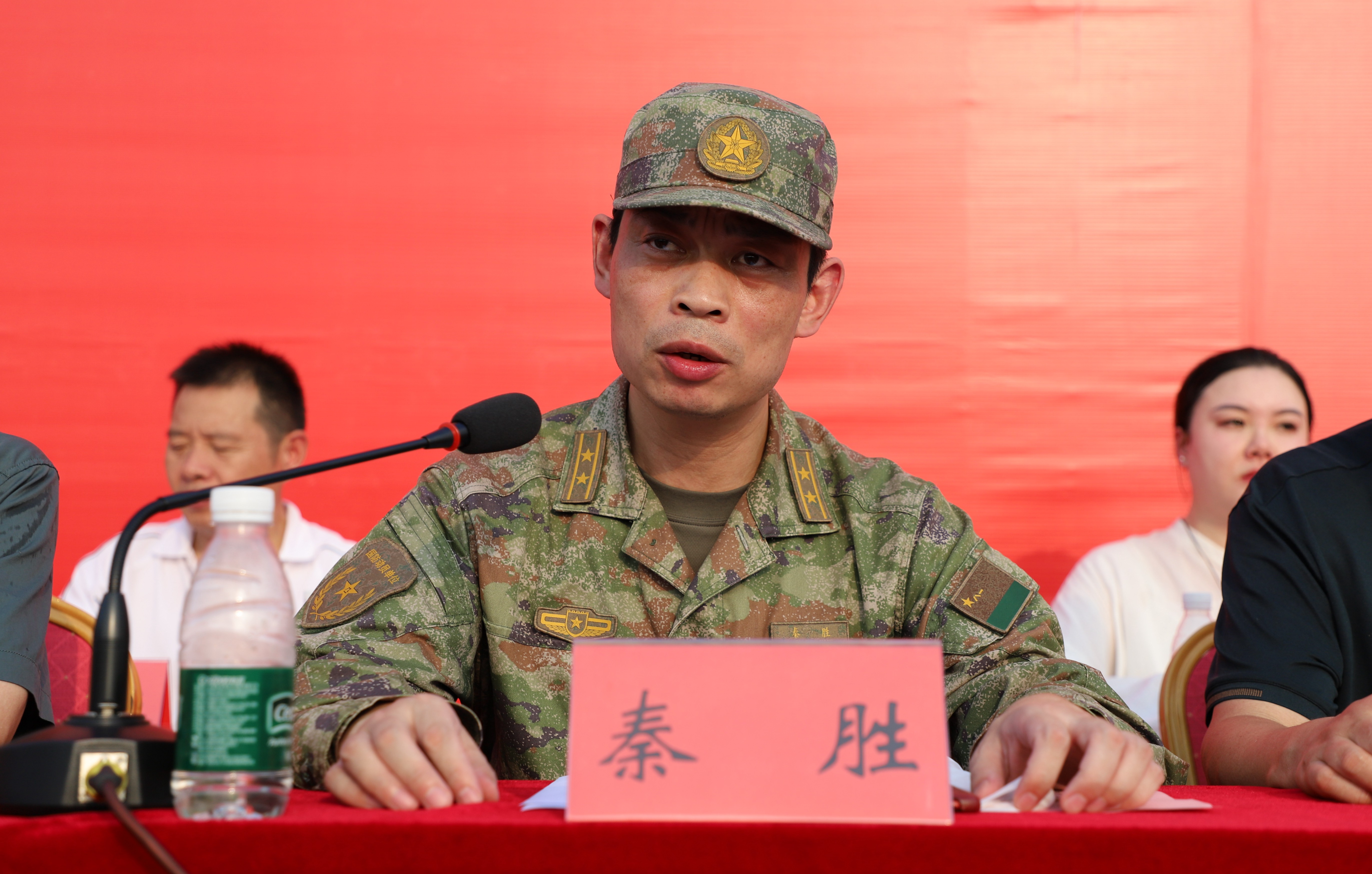 扬中市人武部副部长秦胜在讲话中高度赞扬同学们的军训表现,勉励大家将军人作风延续到日后学习生活中,砥砺意志品质。