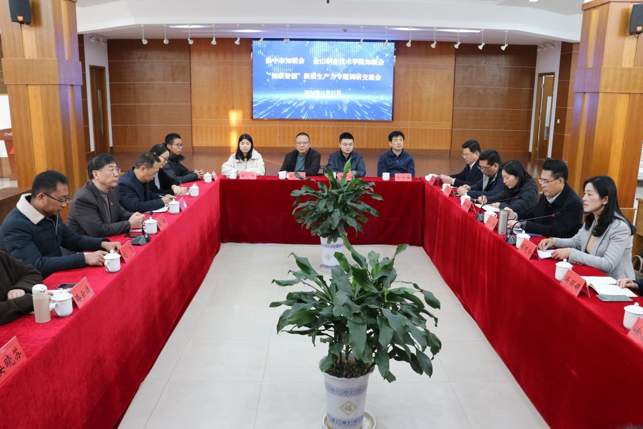 2024年11月27日,扬中市知联会、金山职业技术学院知联会联合开展了“知联智创”新质生产力专题调研活动,并在我院召开了专题调研活动座谈会。扬中市委常委、统战部部长孙健,扬中市委统战部常务副部长司晓玲,学院理事长印斌、党委书记徐铭、党委副书记王家新及扬中市知联会会长、理事和骨干成员参加活动。此外,还特邀了扬中市团市委、民盟、九三学社、新联会、青商会的相关同志参加活动。