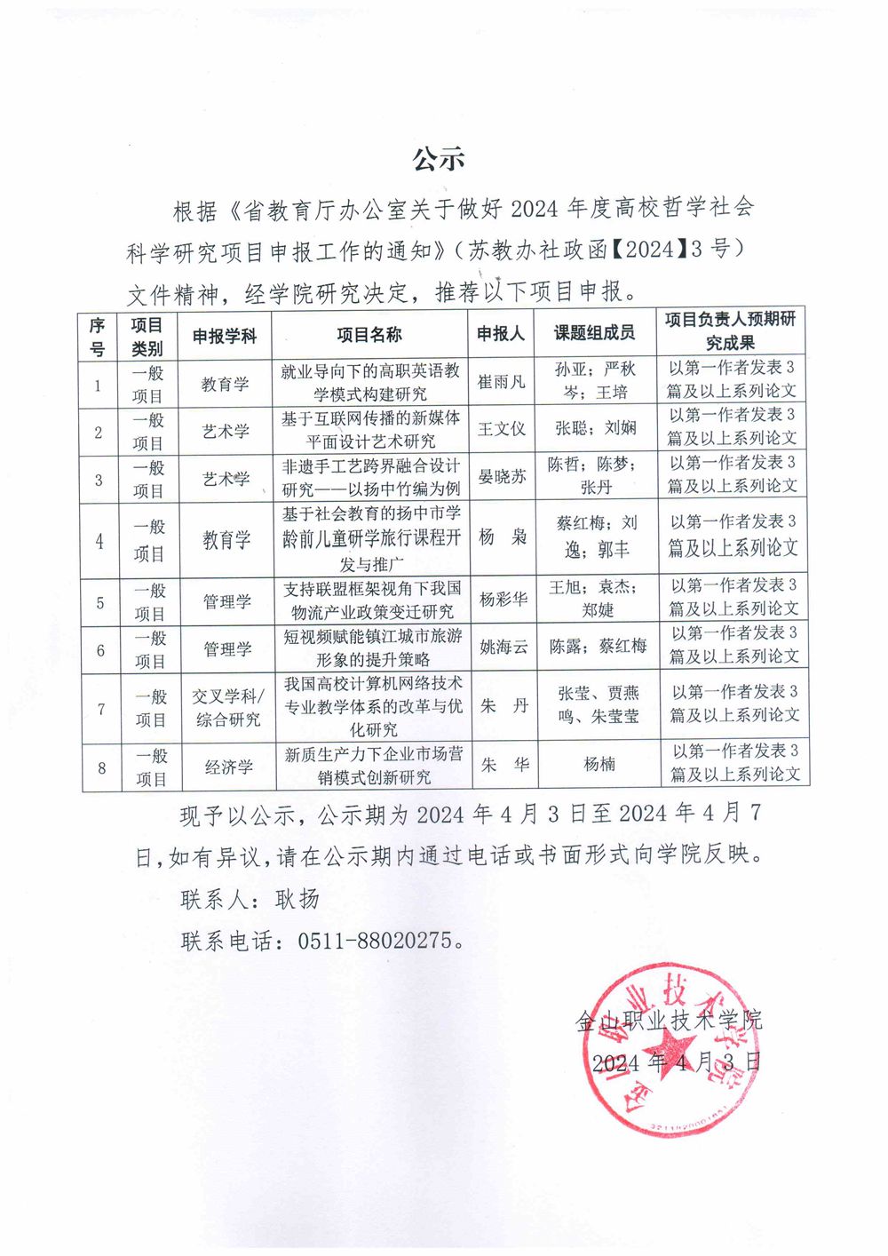 江苏高校哲学社会科学研究一般项目公示