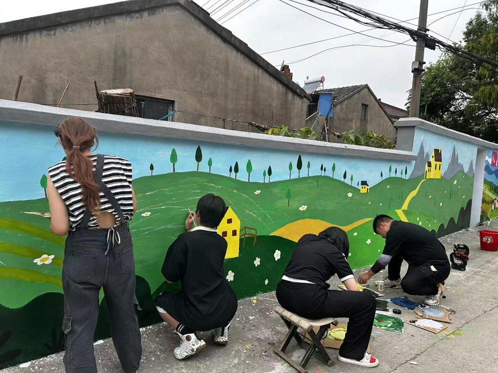 暑假期间,“共染艺术”实践团队共30名师生赴镇江市丹徒区宝堰镇鲁溪村开展“手绘乡村,青年行动”志愿服务活动,在与村支部吴书记和村民进行了项目报备与沟通交流,充分尊重村民群众意愿,经过两周的时间,完成了共6面墙,近200平方的墙绘制作。