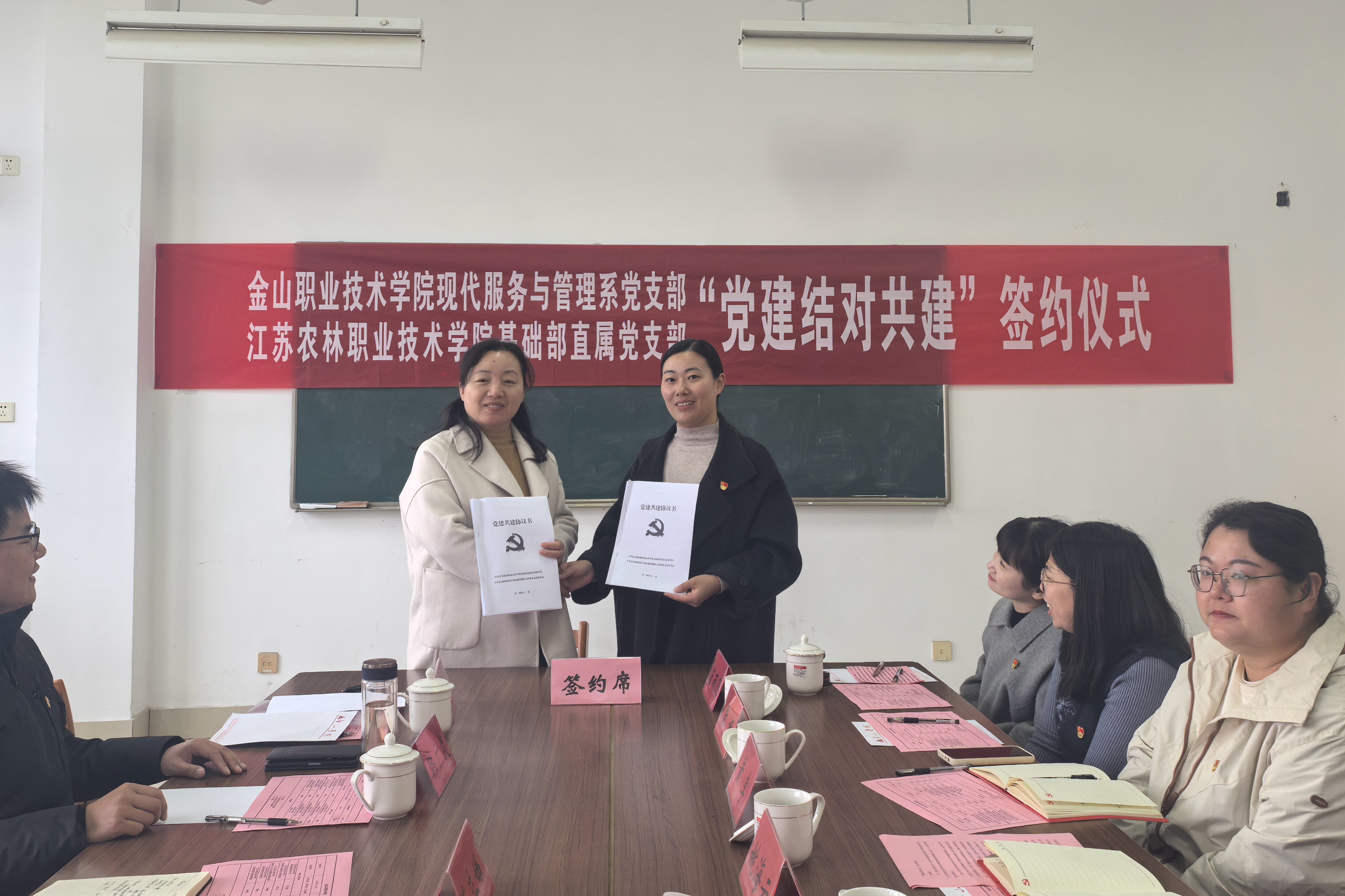 为认真贯彻落实党的二十大、二十届三中全会精神,落实省委公办高校与民办高校党建结对共建的重大决策部署,进一步落实好党建结对共建工作,1120日,金山职业技术学院现代服务与管理系党支部与江苏农林职业技术学院本部基础部直属党支部举办“互学互鉴、互帮互助、互促共赢”党建共建活动。江苏农林职业技术学院基础部直属党支部书记陈立娥、基础部副主任直属党支部统战委员韩广发、基础部办公室主任直属党支部统战委员史和娣、基础部直属党支部组织委员潘春芳、基础部直属党支部宣传委员戚燕丽,金山职业技术学院现代服务与管理系党支部书记姚海云及党员代表们参加了此次活动。结对共建活动以党组织建设、教学科研、社会服务等方面签订了党建共建协议书。