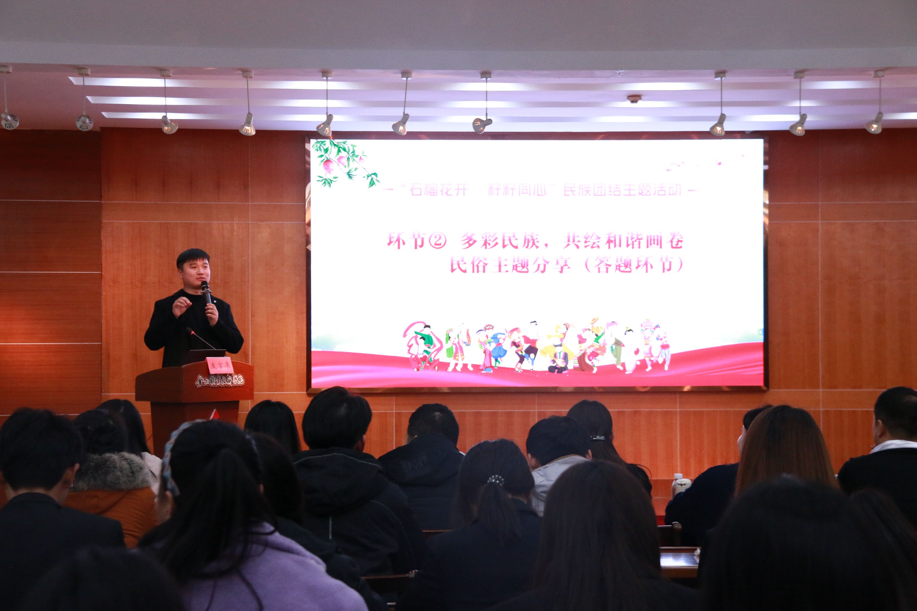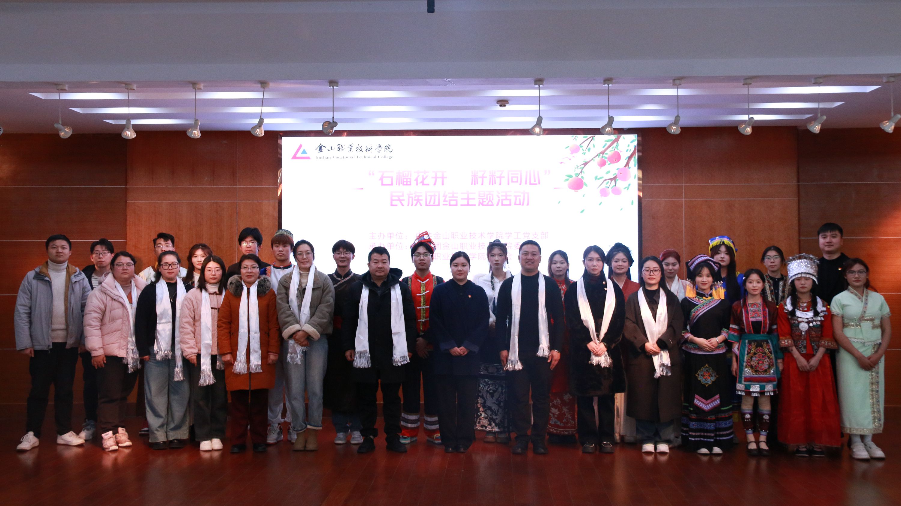 为深入贯彻习近平总书记关于加强和改进民族工作的重要思想,进一步促进我校各民族师生之间的交流与融合,增强中华民族共同体意识,12月11日,由党委组织部、统战部指导,学工党支部和校团委主办,校学生会承办的“石榴花开,籽籽同心”民族团结主题活动在江声楼三楼党员活动室举办。学院党委统战部部长、人事处处长路云洁,机电与交通系党支部副书记景仕荣,机关党支部组织委员耿扬,学工党支部组织委员沈阳,经贸系党支部统战委员袁杰,现服系党支部统战委员黄李,建筑系党支部统战委员陈梦,马克思主义学院党支部统战委员吴蕾,团委组织部部长郭丰老师及少数民族学生代表、团学组织学生干部参加此次活动。