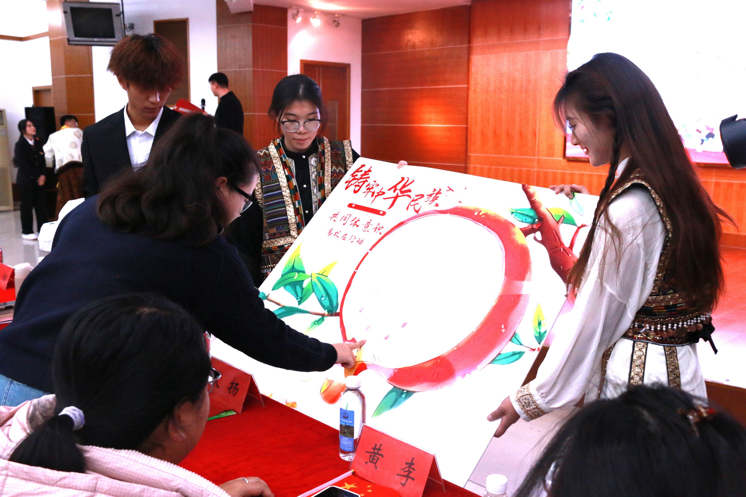 活动还邀请每一位师生在象征民族团结的石榴画作上留下自己的红手印。