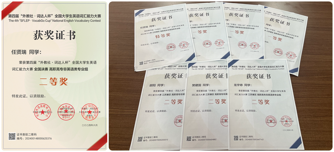 我院英语教研室于2024年3月开始积极宣传、组织报名、认真备赛。共有2410名学生参加了校赛,286位学生晋级省赛并取得优异成绩,获得省级特等奖1名、一等奖3名、二等奖3名;同时,4位学生晋级国赛,其中23会计2班任贤瑞同学荣获国家二等奖的好成绩。