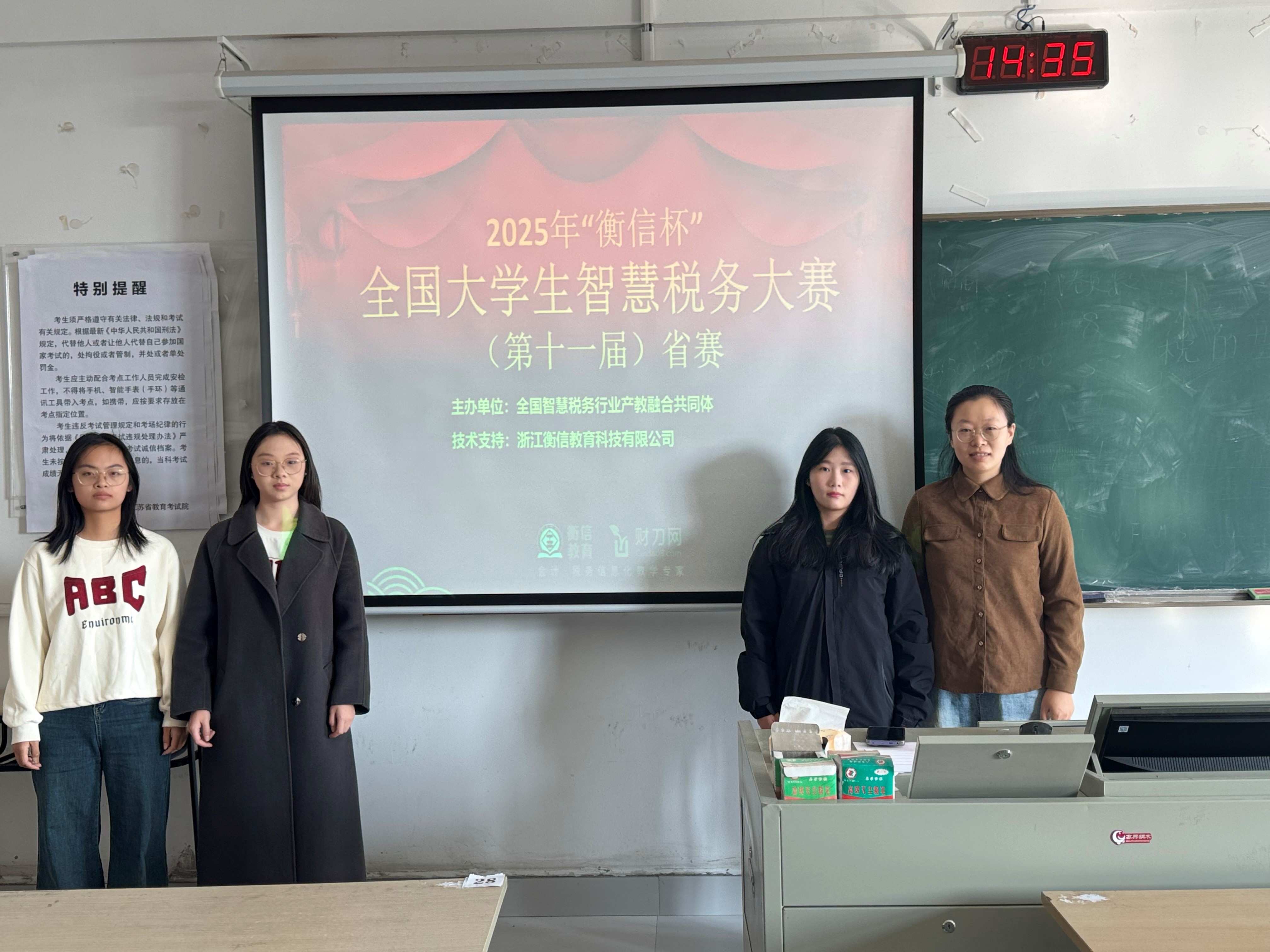 2025年第十一届“衡信杯”全国大学生智慧税务大赛中,我校24会计专业的李玉婷、王文、朱菊同学组成的参赛团队,在财经商贸学院朱婉莹和李霞昌老师指导下,荣获江苏省三等奖。
