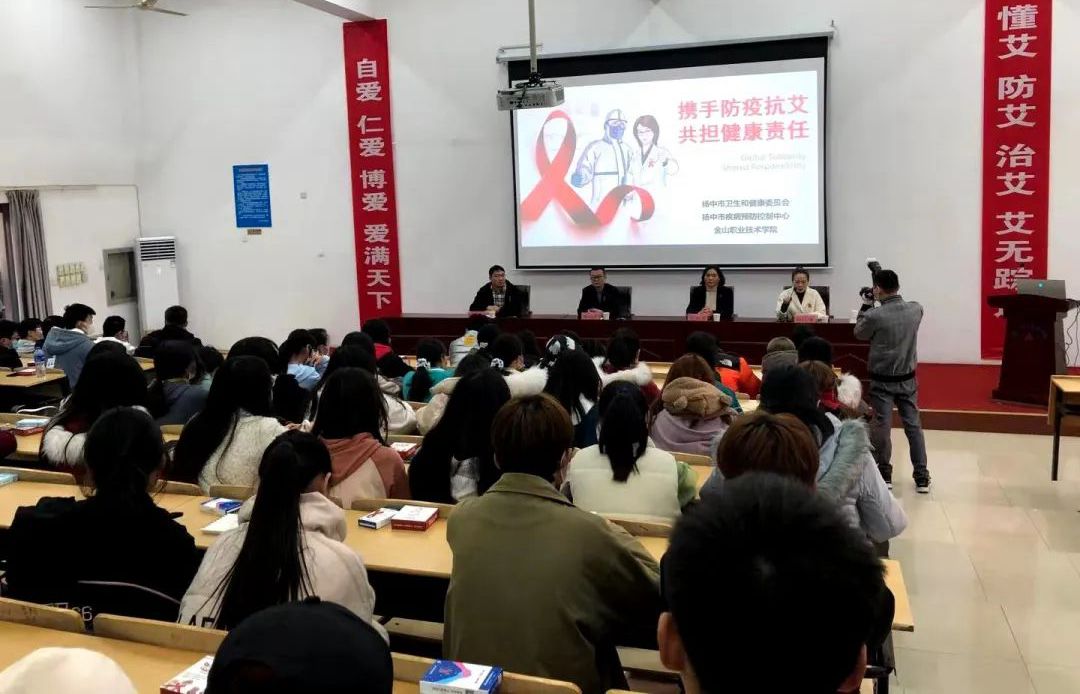 11月30日下午,扬中市疾控中心和我院团委在金山学堂共同举办了“携手防疫抗艾,共担健康责任”校园抗疫防艾专题讲座。