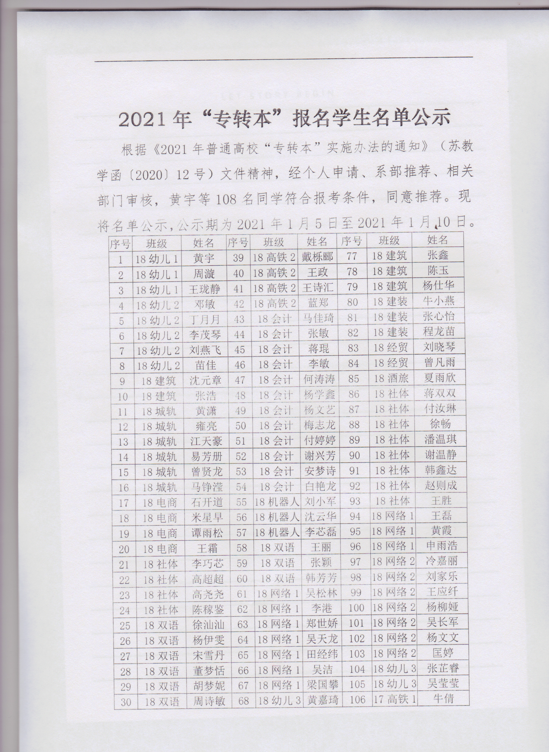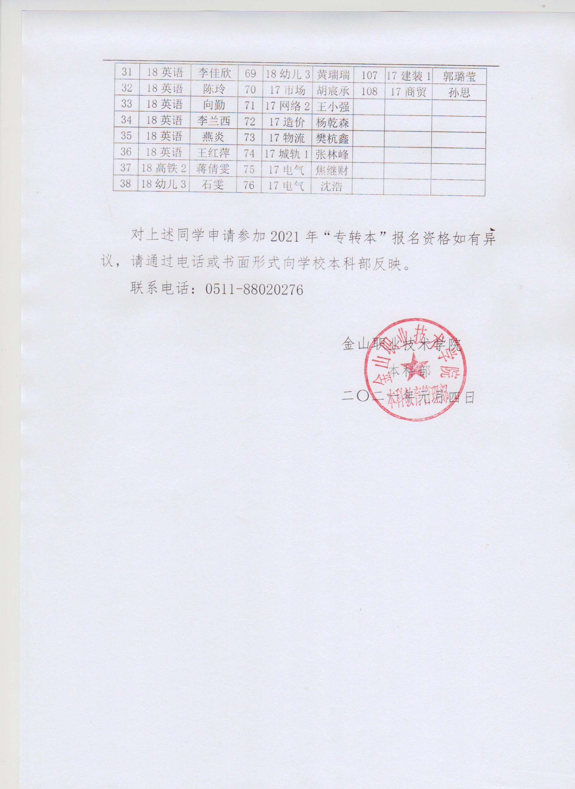 2021年“专转本”报名学生名单公示
