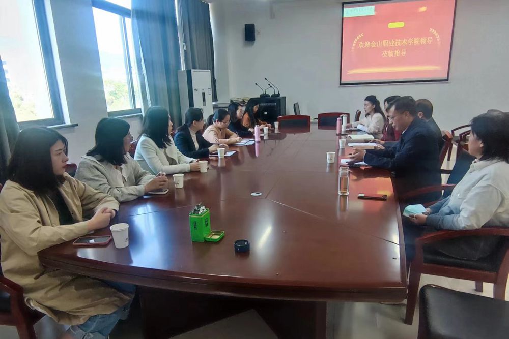 2024年4月26日,经济与贸易系副主任郑婕带领系部教师代表一行7人到访镇江高等专科学校,旨在与镇江高专财经商贸学院开展教学科研工作交流研讨,共同提高教学质量。现任院长王旭、党总支书记孙艳平、财经商贸学院原院长朱冬林等领导热情接待了来访团队。