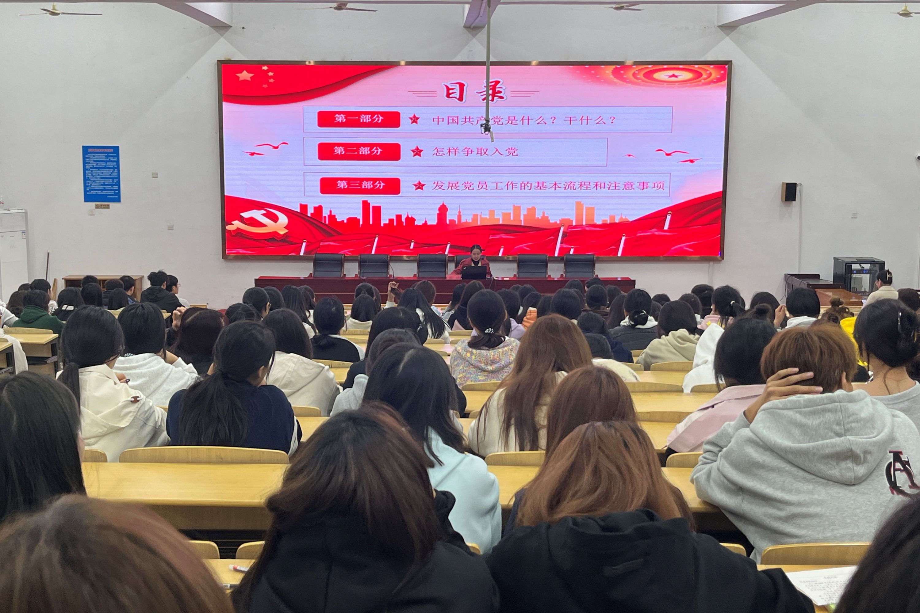 讲座伊始,郑婕对此次讲座的目的和意义进行了介绍,并就“正确认识中国共产党”“端正入党动机,争取早日入党”“发展党员工作的基本流程和注意事项”三个方面展开讲解。她通过生动的案例引导同学们主动思考为什么入党、如何入党及党员的义务与责任是什么这一系列问题,并强调新时代青年学生应树立正确的世界观、人生观和价值观。鼓励同学们以实际行动向党组织靠拢,积极投身社会实践和志愿服务活动,为国家和社会贡献青春力量。