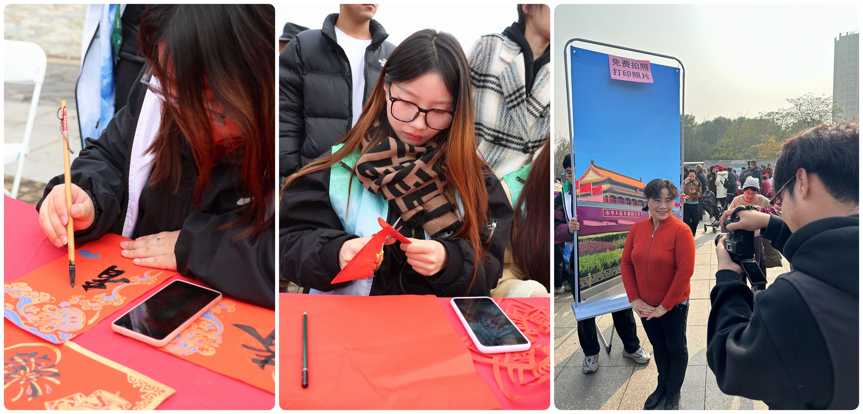 在活动现场,各所高校精心策划并实施了包括法律咨询、科技咨询、医疗服务、健康咨询、文艺表演、书写春联、剪纸等多项活动。我院关心下一代工作委员会(关工委)亦不遗余力地组织并积极参与其中,派遣工艺服务团队亲临现场,进行春联书写、窗花剪裁、手工竹编以及免费冲洗照片等服务,为当地居民提供丰富的文化体验。在文艺演出环节,我院舞龙社与潮舞社的成员们呈现了精彩的表演,赢得了句容市天王镇村民的热烈掌声和高度评价,充分彰显了我院师生的卓越风采。