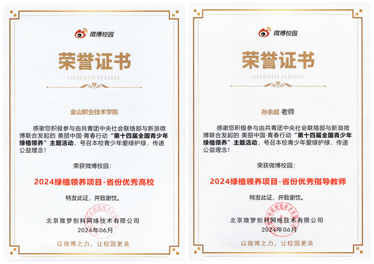 为进一步推动习近平生态文明思想融入青少年教育培养、成长成才全过程,不断深化“保护母亲河”行动的时代内涵,我院积极参与由共青团中央社会联络部拟联合微博共同开展第十四届全国青少年“绿植领养”活动,并荣获微博校园“2024绿植领养项目——省份优秀高校”称号。团委孙余超老师荣获“2024绿植领养项目—省份优秀指导教师”