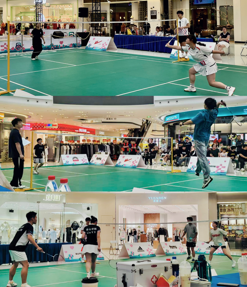 55日下午,由财经商贸学院联合扬中吾悦广场举办的“羽动五一·挥拍争锋”羽毛球比赛圆满落幕。本次比赛共有男子单打、女子单打、混合双打三个赛项,各院学生踊跃参赛。