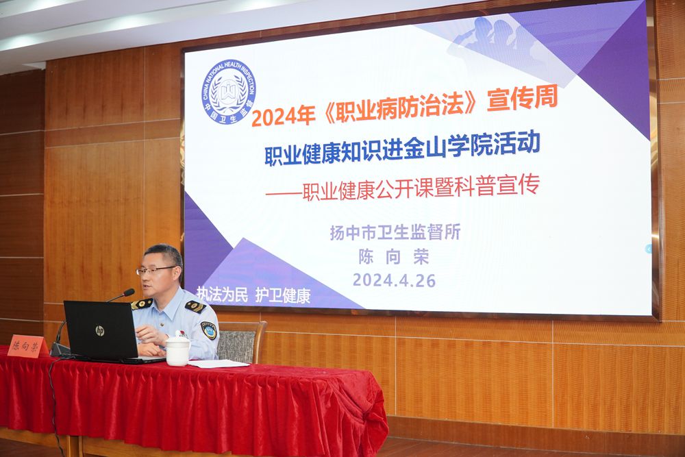 | 为进一步宣传贯彻《职业病防治法》,普及职业病防治和职业健康知识,提高师生职业病防治意识。日前,我院学工处、团委联合扬中市卫健委共同开展“坚持预防为主