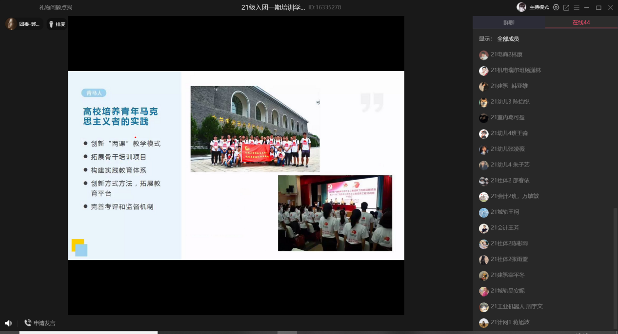 ——我院团委组织团课培训        为庆祝建团百年,持续做好团员发展工作,及时吸收思想政治好、学习努力刻苦、积极上进的青年加入共青团,为学院共青团组织注入...