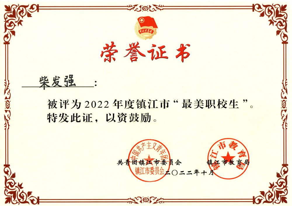 我院两名学生获镇江市“最美职校生”称号