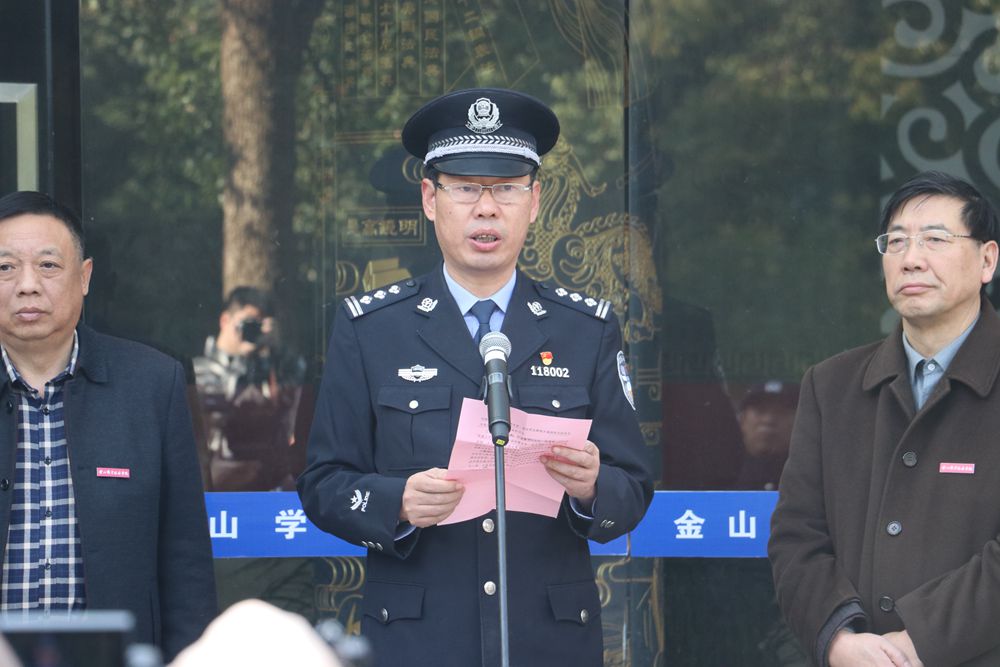 揭牌仪式上,扬中公安局党委副书记、政委张静提出要求:严密警校联动,打造护校安园的坚固支点;优化工作机制,打造警情快处的一线堡垒;强化服务保障,打造服务师生的靓丽窗口。同时,张静表示扬中市公安局将以警务室揭牌为新起点,不断深化警校合作、加强沟通协调,努力将金山学院警务室建设成维护校园安全、护航学院发展、提供便捷服务的有力前沿阵地。