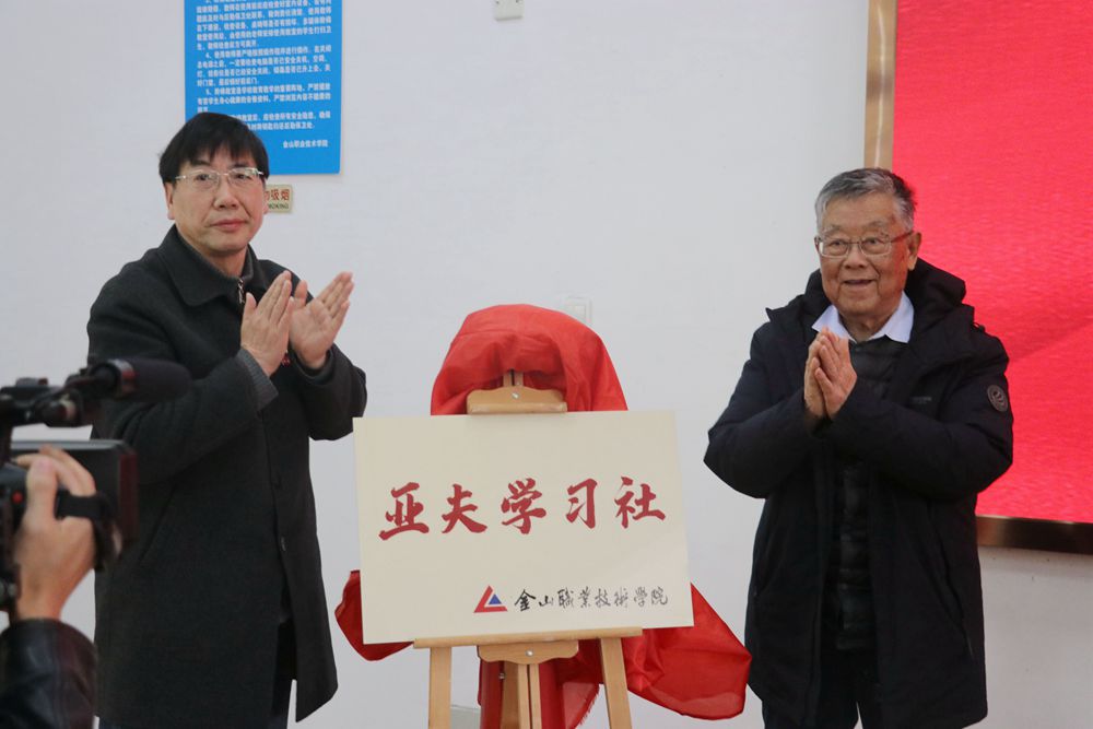 为推动深入学习党的二十大精神,以赵亚夫为楷模,立足岗位学习践行二十大提出的目标任务,学院专门成立了“亚夫学习社”。赵亚夫同志和学院党委书记徐铭共同为“亚夫学习社”揭牌。