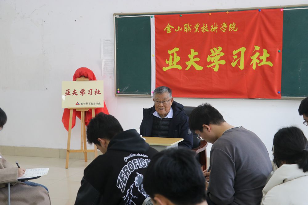 辅导报告结束后,赵亚夫还专门和“亚夫学习社”的同学们进行了交流座谈。同学们纷纷就“传承工匠精神”、“乡村振兴”等问题踊跃提问,深入交流。赵亚夫寄语金山学子们,要明志、立德,认真学习,刻苦钻研,磨砺技艺,努力成长为又红又专的新时代好青年。