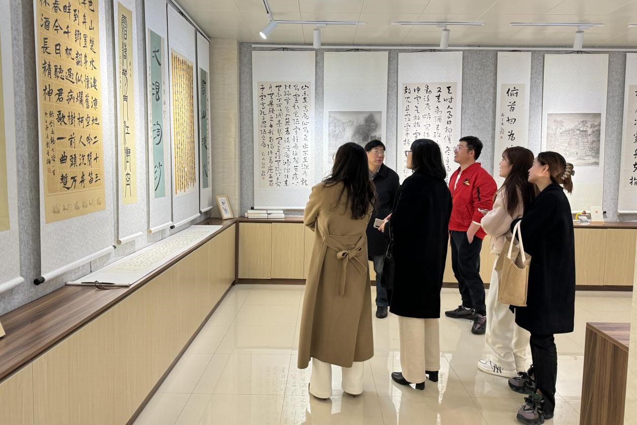 徐铭希望未来两校能够在党建融合、实训建设、技能比赛等方面进一步交流合作。在徐凯和凌蕾花的陪同下,我院一行参观了艺术理论工作室、摄影实训室、艺术设计学院产教融合实训基地、家居家具产品设计与制作中心、虚拟演播室及美育成果展览。在参观过程中,双方围绕实训室的建设、美育活动的开展进行了深入的探讨和交流。