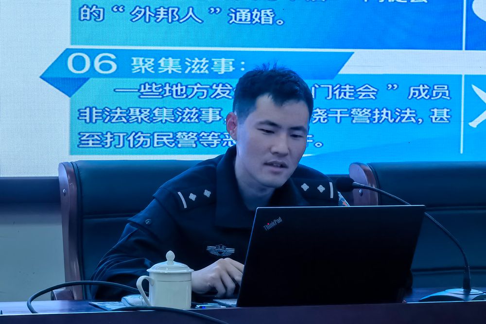 主讲人城东派出所民警贾炜通过播放反邪教警示教育系列短视频、开展警示宣传等形式,让同学们了解什么是邪教、邪教的传播途径以及如何防范和抵制邪教,并结合身边的打击案例,引导同学们树立法治观念,自觉抵制邪教歪理说的侵蚀,对邪教做到不听、不看、不信、不传,并带动身边的家人一同向邪教说“不”。