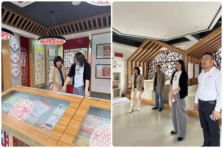为学习本市优秀学校非遗剪纸艺术的先进经验,进一步完善我院艺术类课程建设,4月26日上午,建筑与艺术系主任张聪等一行4人来到了扬中市丰裕中心小学,现场观摩剪纸艺术活动,学习如何将剪纸这一非物质文化遗产引入大学课程。丰小非遗传承人杨荣芳和倪玉蓉老师陪同并做了细致讲解。