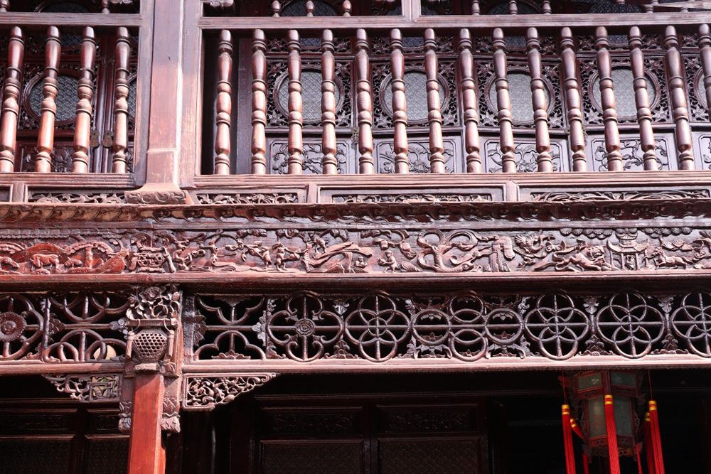 泰州口岸雕花楼的历史可以追溯到清代,它是江苏境内一座具有极高艺术和观赏价值的古建筑,以精美的木雕艺术而著称,楼内的木雕图案繁复华丽,砖雕也有一定的研究价值,福禄寿三星、麒麟送子、凤凰牡丹、暗八仙法器等图案,都寄托了美好的寓意。中华文化里的福禄寿、文人隐士、民间故事、田园生活应有尽有。