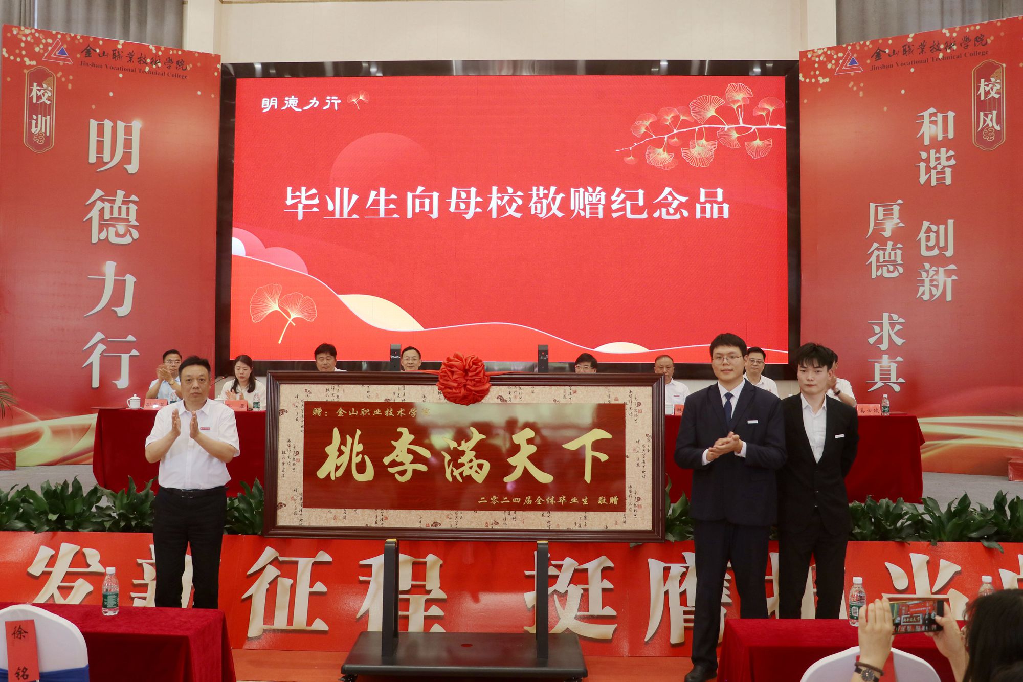 伴随着激昂高亢的《毕业歌》歌声,党委副书记印斌代表学院接受毕业生代表向母校敬赠的纪念品。