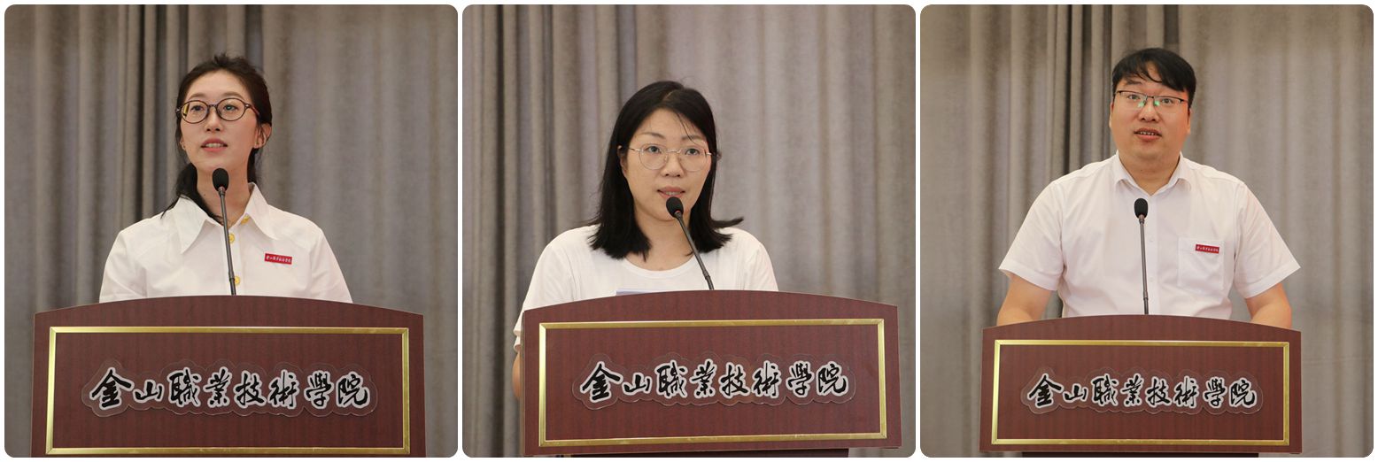 新教师代表王圣棋、优秀教师代表朱艳、学工处副处长张鹏等结合各自岗位和系部、部门实际,就如何做好新学期工作表态发言。