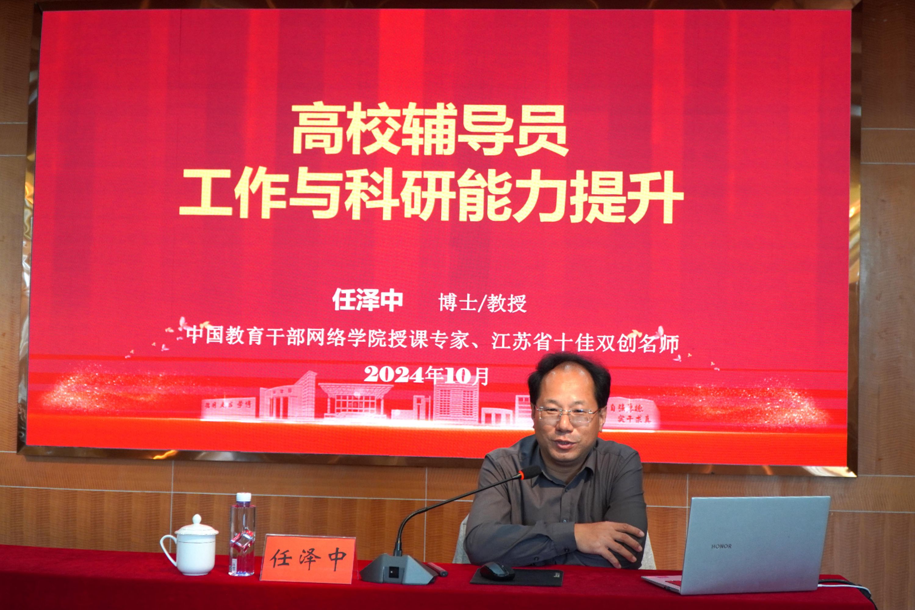 座谈结束后,我院在图书馆三楼报告厅开展“高校辅导员工作与科研能力提升”专题培训,任泽中担任培训主讲。任泽中从辅导员岗位特点和角色定位、辅导员的科研能力提升和辅导员的工作能力提升三个方面,就辅导员如何开展好学生工作以及素质能力提升作经验分享。他指出,辅导员是开展大学生思想政治教育的骨干力量,是高等学校学生日常思想政治教育和管理工作的组织者、实施者、指导者。学生工作有职责,无边界;有尺度,无止境。辅导员应当努力成为学生成长成才的人生导师和健康生活的知心朋友,迈向新征程、勇担新使命、实现新作为。