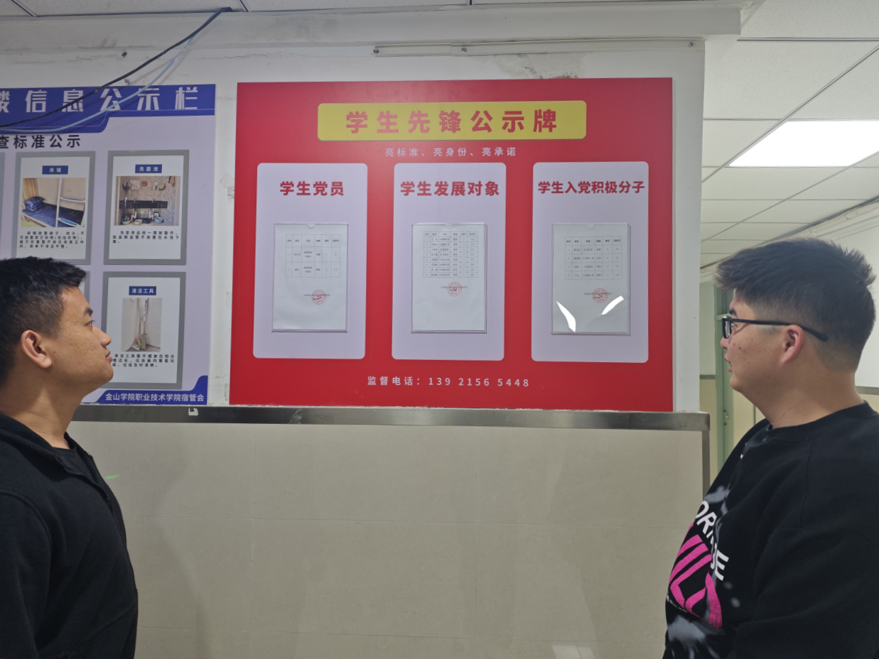 公示牌中标注了学生入党积极分子、学生发展对象、学生党员的姓名、班级、宿舍号,促使他们自觉接受广大同学监督。设立学生先锋公示牌,旨在充分发挥学生党员的先锋模范作用,进一步增强党员的责任意识、服务意识、表率意识,进一步规范党员学生言行,推动建设文明宿舍、构建和谐校园。